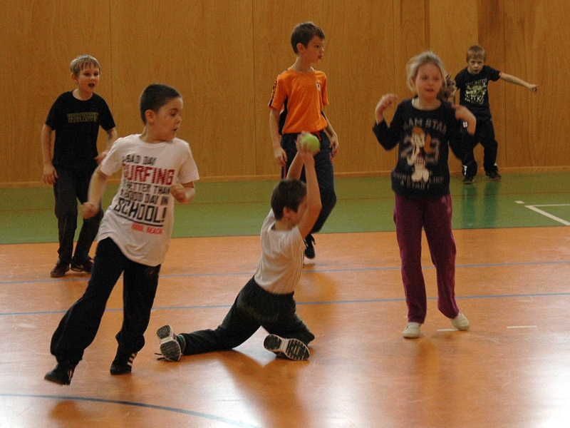Utkali se mezi sebou žáci prvních a druhých tříd ze čtyř třebíčských základních škol. Z velké tělocvičny ZŠ Václavské náměstí si nakonec odvezla každá z nich alespoň jednu medaili. Mezi prvňáčky byli nejúspěšnější domácí, kteří ve finále porazili ZŠ Na Kopcích 14:13. Bronz putoval na ZŠ T. G. M.