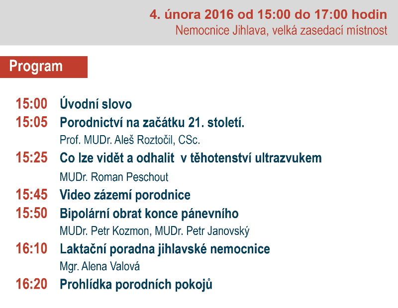 15.00 ve velké zasedací místnosti jihlavské nemocnice. Prohlídky porodních pokojů jsou naplánovány po skončení konference. Vstup je zdarma.