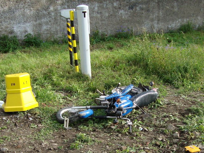 „Motocyklista nedal přednost osobnímu vlaku, který přijížděl zprava. Následně narazil do přední části vlaku a náraz ho odhodil i s motocyklem mimo kolejiště. S