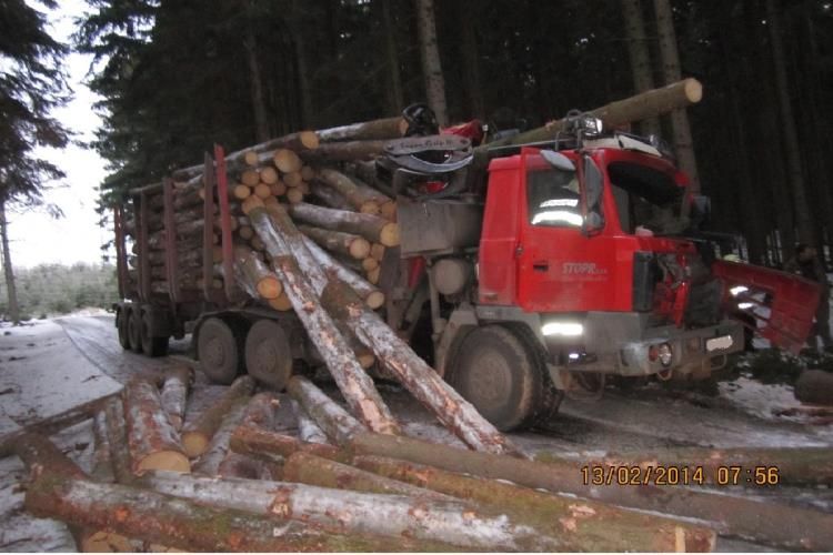 V lese u Řídelova na Jihlavsku narazil ve čtvrtek 13. února ráno řidič s nákladním vozem do stromu a při nehodě se zranil.