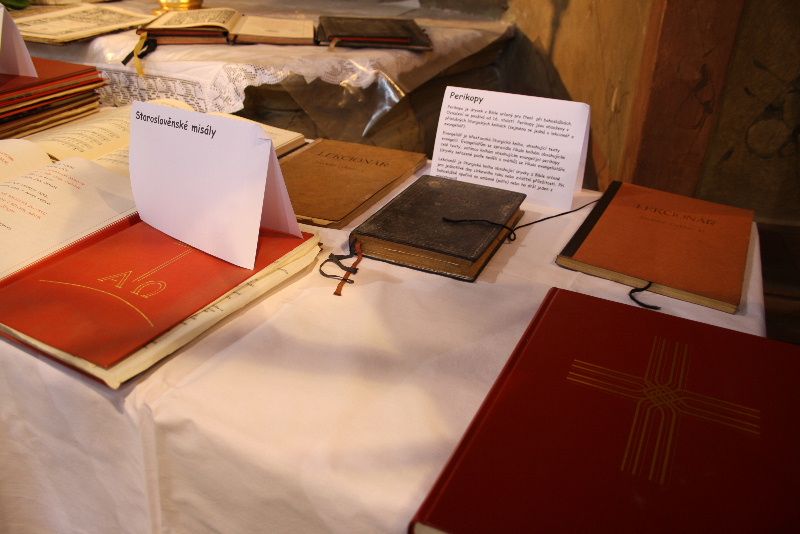 Pro účastníky kulturního programu a návštěvníky chrámu sv. Markéty byla u bočních oltářů připravena výstava liturgických knih, breviářů a misálů nejrůznější provenience a stáří.