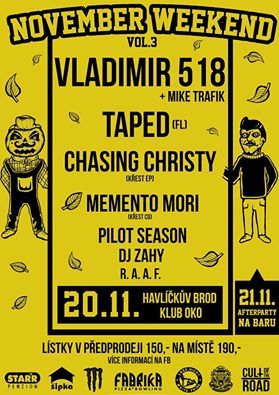 Vystoupí na něm kapely Taped nebo havlíčkobrodští Chasing christy. Hlavním hostem budou Vladimír 518 a Mike trafic.