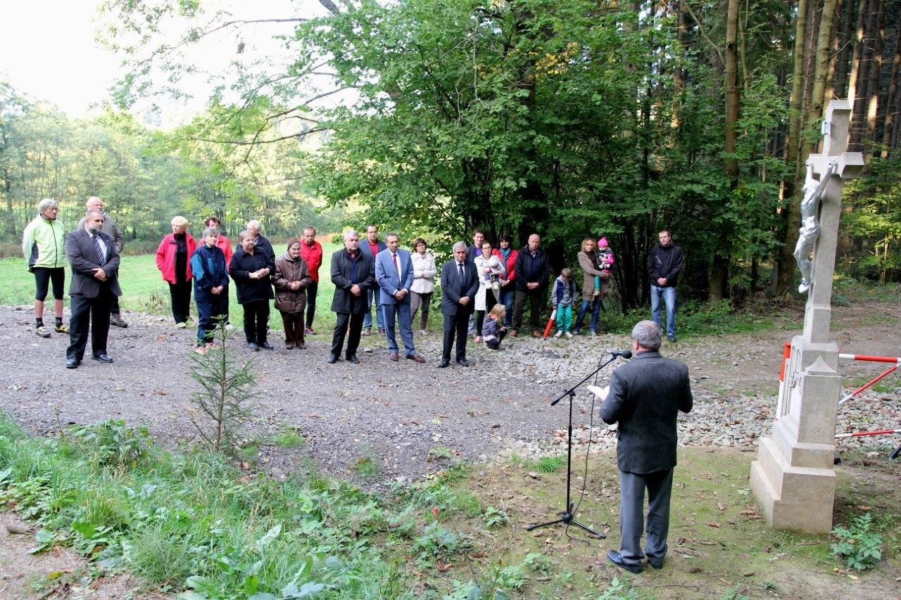 Akce v příjemné atmosféře se zúčastnily dvě desítky přihlížejících, ke kterým promluvil primátor města Rudolf Chloupek. „Křížek už je nyní v pořádku. Jsem rád, že vás mohu informovat o tom, že v dohledné době radnice zajistí také opravu fasády kaple u vás na návsi v Popicích,“ sdělil přítomným primátor města. Několik slov přidali také jeho náměstci Jaroslav Vymazal a Jaromír Kalina.