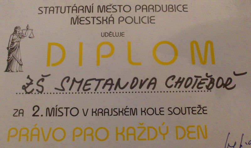 Dominika Šustrová, Kristýna Halamová, Daniel Musílek a Filip Joska se umístili na druhém místě z celkového počtu 19 družstev. Úsilí manažera prevence kriminality Jiří Novotného, soustavná pedagogická práce učitelky Moniky Vodrážkové, ale hlavně píle samotných účastníků přineslo ovoce.