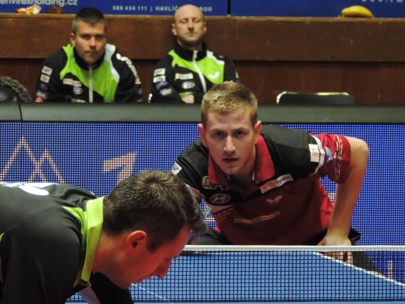 Hosté šli do vedení zásluhou slovenského reprezentanta Pišteje, který sice prohrál v prvním setu se Šimončíkem, druhý však strhl na svou stranu 15:13, a tím rozhodl. Další dvě sedy už jednoznačně diktoval hru. Širuček dorovnával proti Šeredovi 3:1, ale Hrnčiřík pokulhával za Olejníkem a domácí prohrávali 1:2.