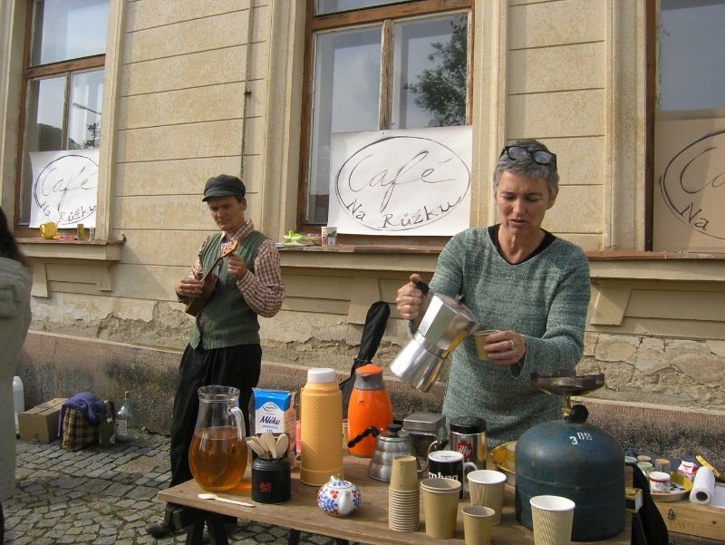 Ve čtvrtek 9. června se prostranství před bývalým hotelem U Nádraží v Telči proměnilo v improvizovanou kavárnu Petiční kavárna Na Růžku.