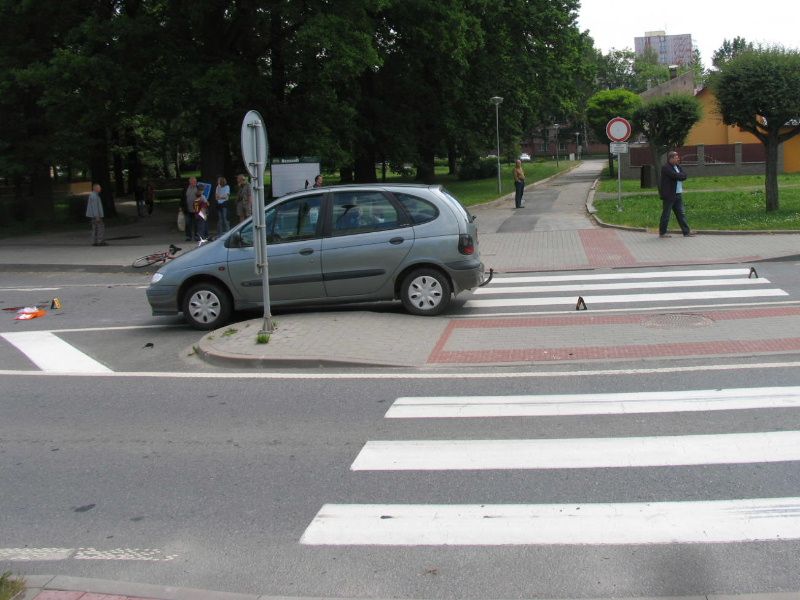 Osobní vůz Renault Megane Scénic šedé barvy se střetl s cyklistkou, která jela na jízdním kole Liberta. Cyklistka při nehodě utrpěla těžké zranění a musela být převezena do nemocnice.