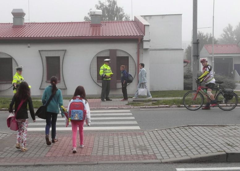 Hned první školní den byl jedním ze zvolených stanovišť přechod pro chodce v Kamenice u Jihlavy, kde se policisté zaměřili na malé i velké školáky z blízké základní školy a mateřské školky. Společně s krajským koordinátorem společnosti BESIP a pracovnicemi Zdravotní pojišťovny Ministerstva vnitra pokládali dětem otázky, které se týkaly pravidel bezpečného přecházení vozovky. Děti policisté odměnili za správné odpovědi dárky v podobě zápisníčků do školy nebo reflexních doplňků. Většina dětí odpovídala na položené otázky ohledně přecházení komunikace po vyznačeném přechodu pro chodce správně a školáci, kteří odpovědi neznali, se důležité informace dozvěděli od policistů.