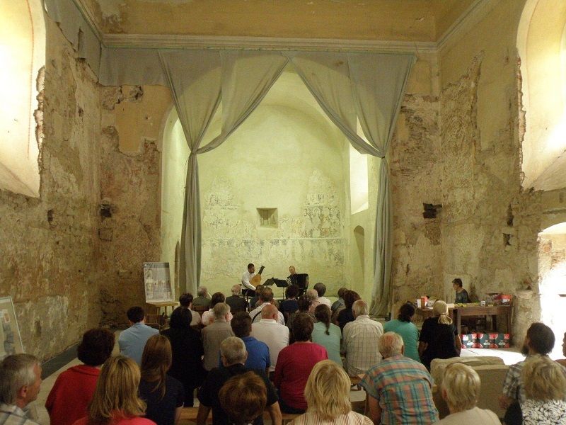 Kostel sv. Víta – Interiér kostela při koncertě 1. 8. 2015 s vítězným obloukem