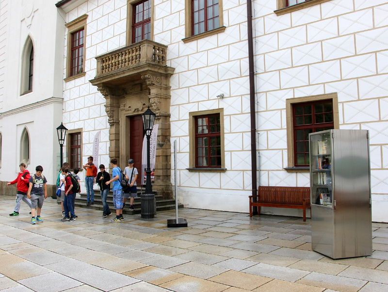 Muzeum Vysočiny Třebíč při příležitosti zahájení 21. ročníku veletrhu muzeí ČR opět instalovalo pouliční knihovnu, knihobudku, na nádvoří třebíčského zámku.