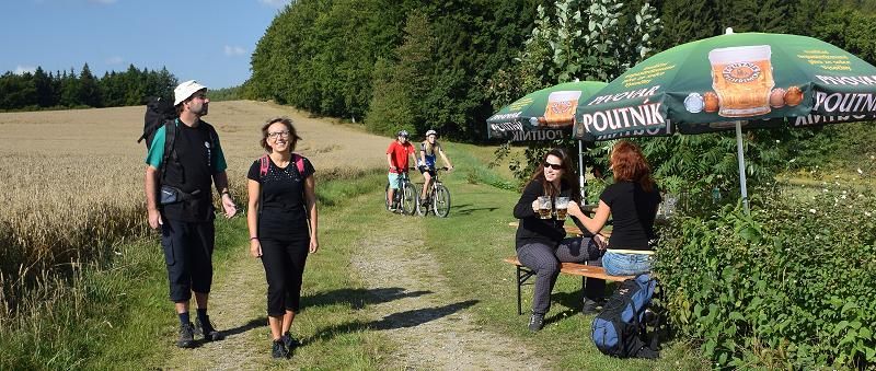 Logem jsou označeny i Poutníkovy hospůdky a restaurace na trase. Všechny mají v letních měsících venkovní posezení, kde mohou zájemci dohlédnout na své kolo. Stezka je provede těmi přírodními zákoutími Brány Vysočiny - z Pelhřimova - města rekordů, přes poutní místo Křemešník, Novou Cerekev s židovskými památkami, Červenou Řečici s arcibiskupským zámkem zpátky do Pelhřimova.