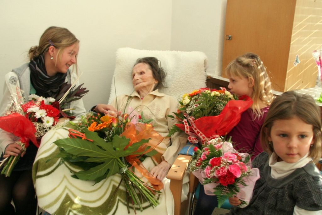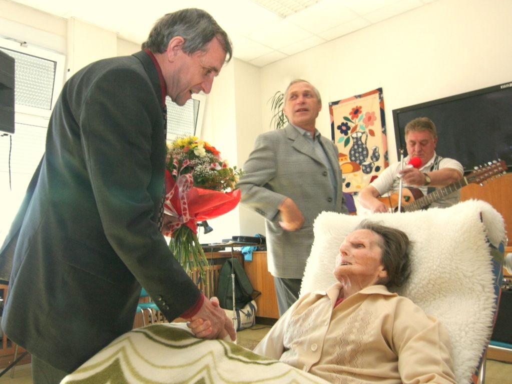 Pracovníci domova seniorů pro sto pětiletou dámu připravili velkou oslavu s kapelou a bohatým občerstvením, nechyběl dort množství květin. Oslavě přihlíželo několik desítek obyvatel domova, kteří si zazpívali a případně i zatančili. Od zástupců radnice dostala nejstarší obyvatelka města dárkový koš, pamětní list a květiny. S blahopřáním přišla samozřejmě také rodina s prapravnoučaty.