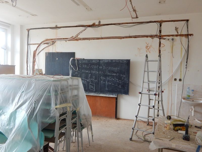 Náhodný návštěvník, který do budov školy vstoupí na přelomu července a srpna, bude jen stěží věřit tomu, že by zde od prvního září měla odstartovat běžná každodenní výuka. Probíhá totiž druhá etapa rekonstrukce elektroinstalace, která zahrnuje kompletní výměnu slaboproudých rozvodů v suterénu a přízemí staré budovy a výměnu silnoproudých a slaboproudých rozvodů ve druhém, třetím a čtvrtém patře nové budovy.