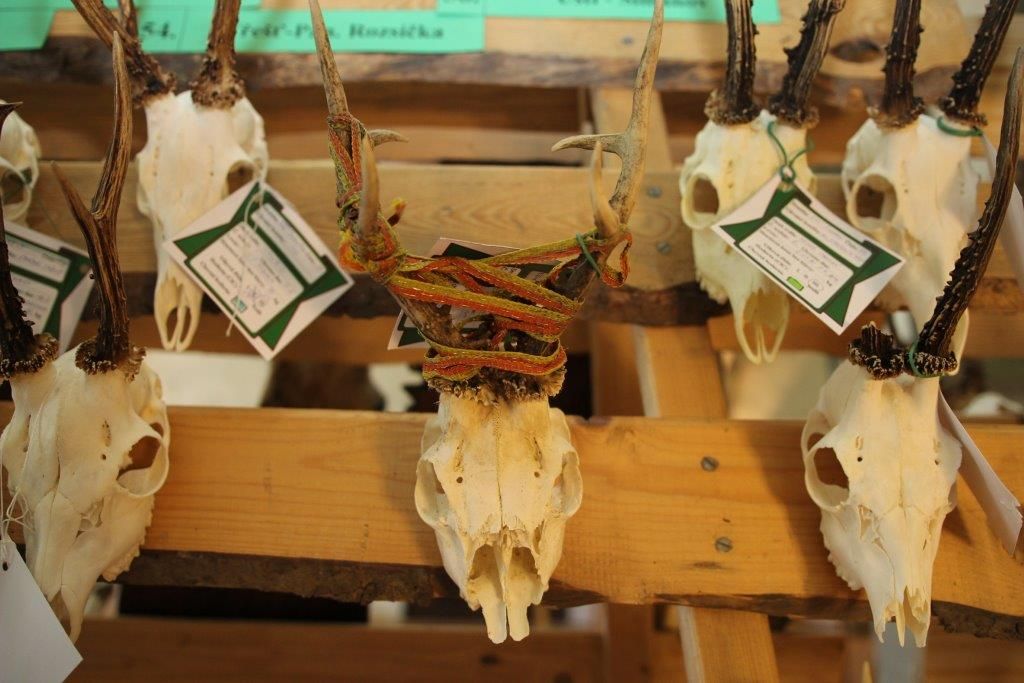 Kromě běžných trofejí jsou k vidění i trofeje výjimečné. „Je zde trofej srnce, který se parůžky zamotal do elektrického ohradníku a nepodařilo se mu vyprostit. Byl to krutý konec. Bohužel se to nestává jen výjimečně a myslivcům se málo kdy může podařit zvíře zachránit,“ uvedl k jedné z ukázek vedoucí oddělení lesního hospodářství a myslivosti Milan Slavinger.