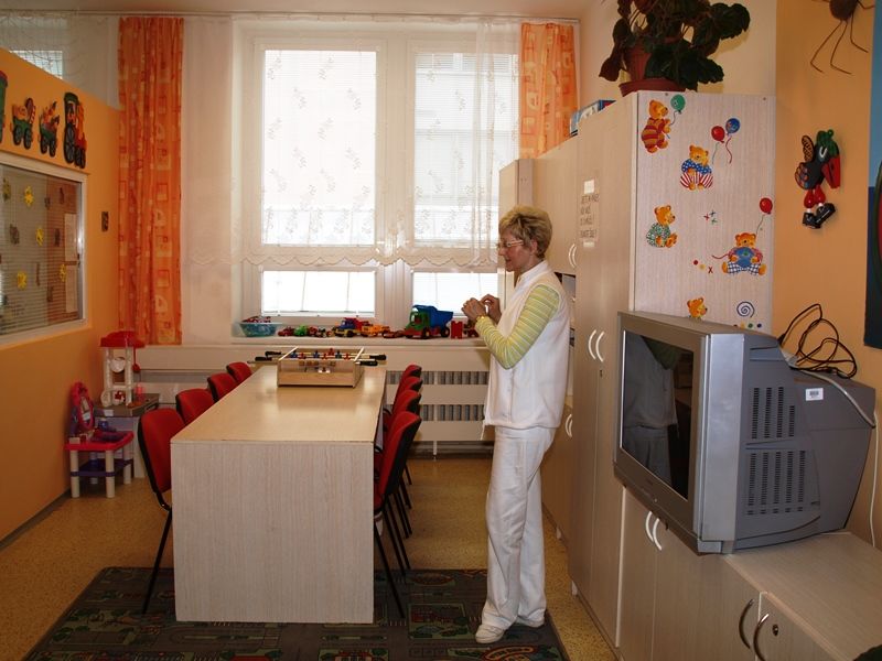 V mateřské škole, která funguje ve všední dny po celé dopoledne, dochází učitelka za dětmi přímo na pokoj. „Většinou nám asistují rodiče, kteří jsou s malými dětmi po celou dobu v nemocnici. Rodiče se na vyučování také podílejí,“ vysvětluje učitelka Alena Smejkalová, která má školku na starosti.