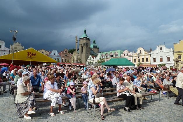 Ve 14.15 se ujal slova moderátor Vratislav Měchura, který seznámil zaplněné Havlíčkovo náměstí s programem a poté předal slovo starostovi Janu Teclovi, který s potěšením oficiálně festival zahájil. Přesně s úderem 14.30 se ozvali trubači z ochozu nedalekého kostela Nanebevzetí Panny Marie a festival se rozjel.