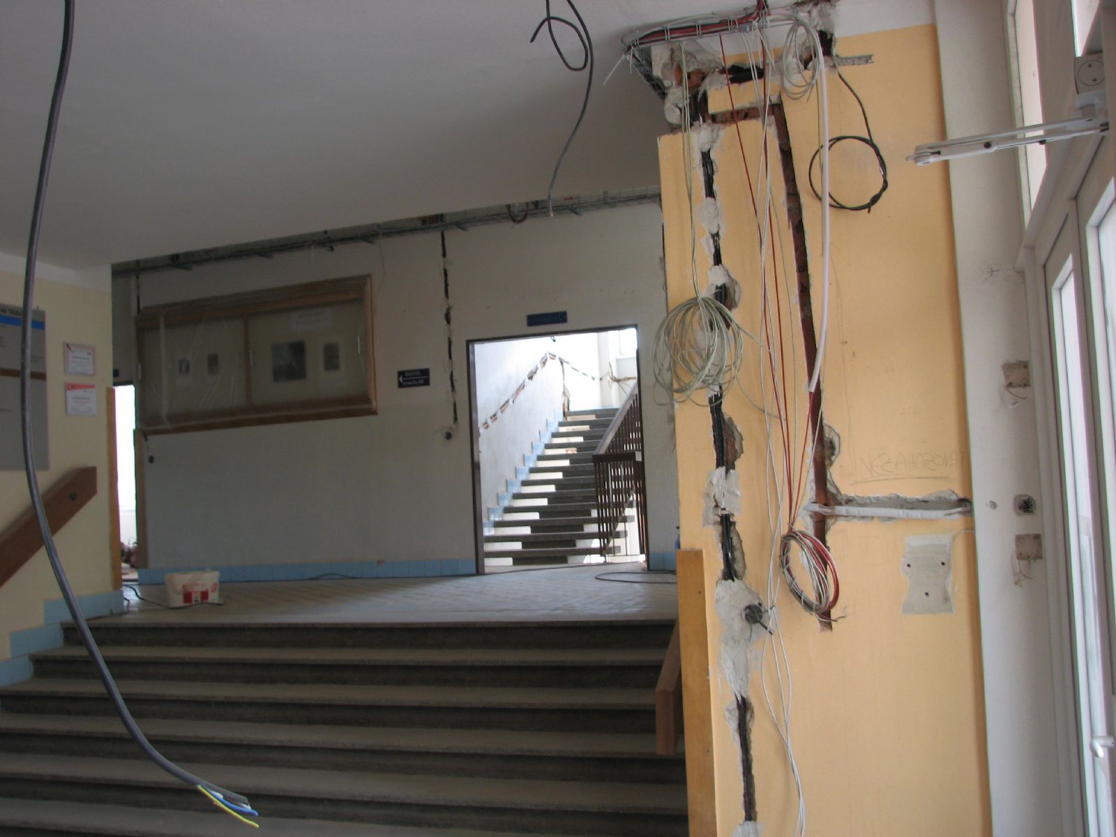 "Vybudování nové elektroinstalace je rozděleno do dvou etap, z nichž první probíhá o letošních prázdninách a druhá se uskuteční během léta 2015. Rekonstrukce zahrnuje kompletní výměnu slaboproudých rozvodů v celém areálu školy, výměnu silnoproudých rozvodů v nové budově, zavedení protipožárního systému, rekonstrukci telefonní ústředny a telefonních rozvodů, zavedení nového rozhlasového systému, osazení školy kamerovým systémem, zbudování nového zabezpečení vstupů do budovy, kompletní obnovu datových rozvodů a zavedení wi-fi sítě v celém areálu školy. Celá tato akce byla vysoutěžena zhotovitelem za 10,5 milionů Kč," vysvětluje ředitel školy Hynek Bouchal.
