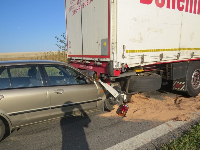 Řidič osobního vozu nedodržel bezpečnou vzdálenost za tahačem s návěsem a zezadu do něj narazil. Při nárazu si řidič osobního vozu způsobil zranění, se kterým ho zdravotníci převezli do nemocnice v Jihlavě,“ popsala Dana Čírtková, tisková mluvčí krajských policistů na Vysočině.