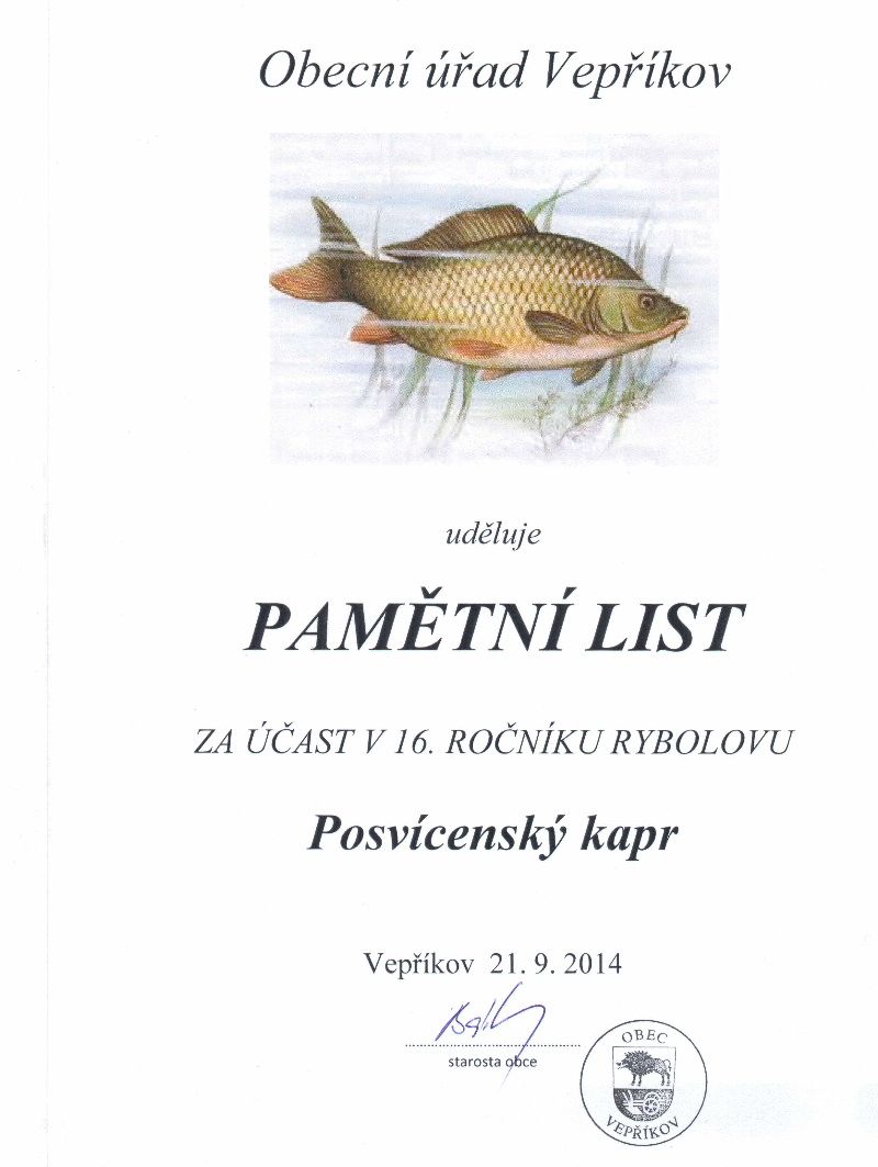 V neděli 21. září se ve Vepříkově uskutečnil šestnáctý ročník rybářské soutěže Vepříkovský posvícenský kapr.
