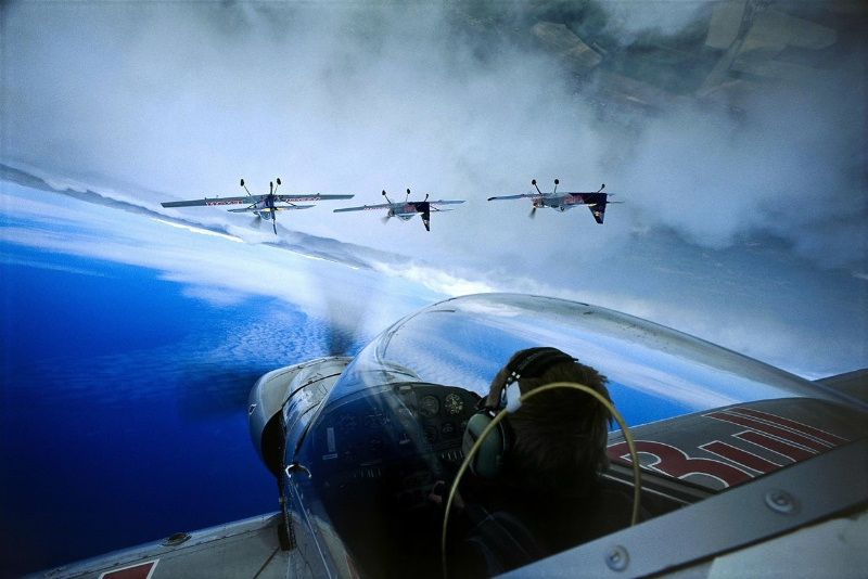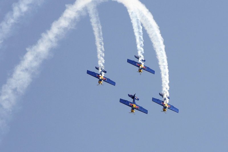 Flying bulls provádí akrobatickou formaci