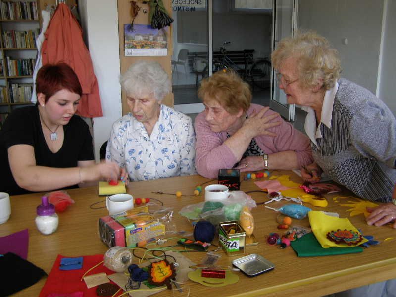 „Dílna plstění byla jednou ze součástí projektu Aktivní senior, který realizuji v rámci své závěrečné absolventské práce v Domě pečovatelské služby v Polné u Jihlavy,“ uvedla Martina Andělová. „Během odpoledne jsem seniorky seznámila s materiálem a nasbíraly inspiraci z již zhotovených věcí. Dále jsem jim vysvětlila způsob práce a postup při výrobě šperků. Za dvě hodiny vyrobily náušnice, celé komplety šperků včetně náramků a sponek do vlasů. Seniorky nejen poznaly novou sociálně-aktivizační činnost, které se i nadále některé z nich věnují, ale také si procvičily jemnou motoriku prstů,“ dodala Martina Andělová.