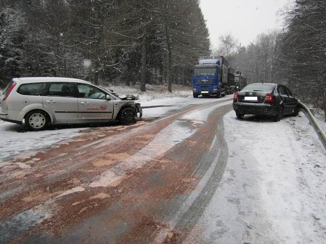 Sněžení a namrzající povrch silnic na některých místech Vysočiny komplikoval ve čtvrtek 8. března dopravnu v kraji. U Martínkova na Třebíčsku se srazila dvě auta.