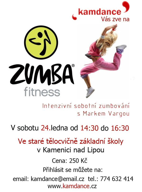 V sobotu 24. ledna odpoledne pořádá Taneční a pohybová škola kamdance pořádá ve staré tělocvičně Základní školy v Kamenice nad Lipou zumbování s Markem Vargou.