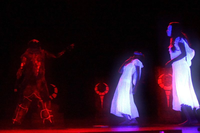 Představení využívá rovněž efektu ultrafialových lamp, které jsou cíleně rozmístěna kolem jeviště. Toto černě světlo pak zvýrazňuje oděv, kontaktní čočky, malby na těle účinkujících i ostatní rekvizity a dává tak představení svůj magicky nádech tajemna. Ostatní efekty jsou tvořeny pomocí LED žároviček a laserových paprsků.