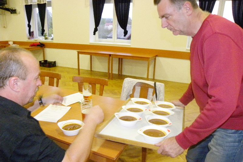 Starosta Václav Havelka odstartoval v sále obecního domu klání mezi kuchaři, za Česko soutěžil Marian Polanský a za Slovensko Antonín Repka. Všichni, kteří se dostavili, obdrželi soutěžní vzorky obou soutěžících, aniž by věděli, který vzorek patří, kterému kuchaři.