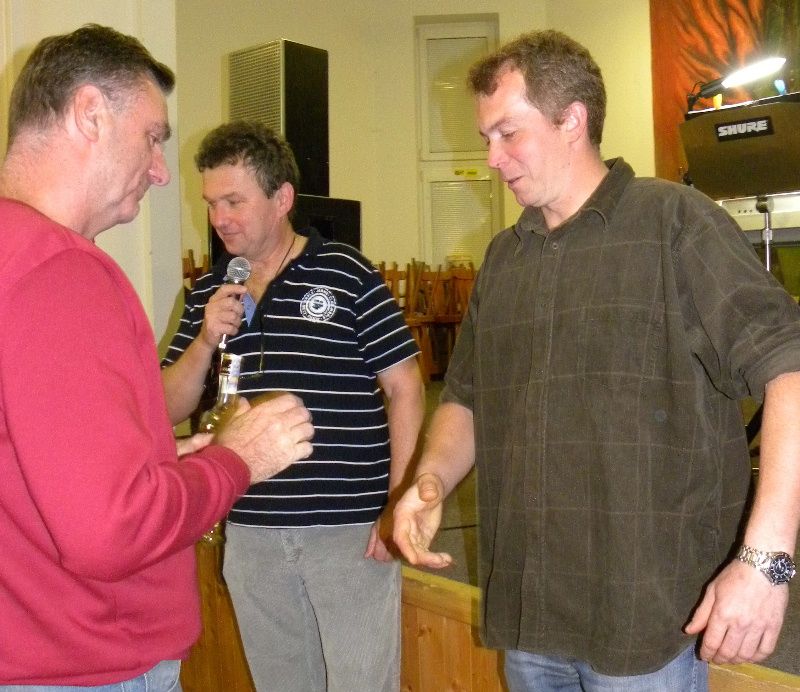 Poté pomocí plastových žetonů hlasovali pro guláš, který jim více chutnal. Po nelehkém rozhodování ve vyrovnaném boji, kdy byl výsledek 37:37, bylo nutné losování k vyhlášení vítěze. Vítězem se stal místní Marian Polanský, obdržel od pořadatelů mistrovskou vařečku a kuchyňské hodiny.Úvodní foto: Oba kuchaři, Marian Polanský a Antonín Repka