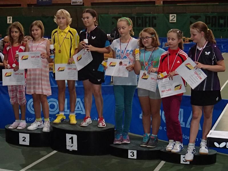 Dvě medaile pro Vysočinu veze z pražské Oazy nejmladší žákyně Daniela Růžičková ze Světlé nad Sázavou. Ve své cestě na stupně vítězů musela nejprve ve skupině porazit pátou hráčku českého žebříčku Sýkorovou z Lhoty u Potštejna a ve finálovém pavouku zcela jistě přehrála ve třech setech republikovou trojku Sommerovou z Kotlářky Praha. Teprve v semifinále ji zastavila druhá nasazená Záděrová z MS Brno. Růžičková umocnila skvělý výsledek z dvouhry druhou bronzovou medailí v turnaji čtyřher.