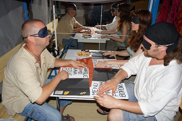 Návštěvníky kavárny průvodce s klapkami na očích doprovodí do letní kavárny potmě, kde si budou moci objednat ze speciálních nápojových lístků pomoci hmatu a čichu. Dále si budou moci vyzkoušet rozeznávat předměty běžné denní potřeby pomocí hmatu a zahrát si společenské hry.