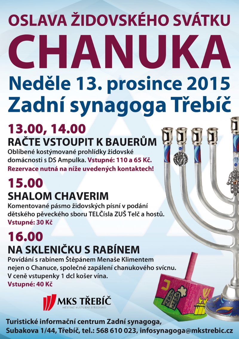 Pozvání přijal rabín Menaše Kliment, který se s návštěvníky ve svém vyprávění podělí o to, jak slaví Chanuku on, co dobrého se připravuje v židovských domácnostech na sváteční stůl a jak se zapalují chanuková světla.