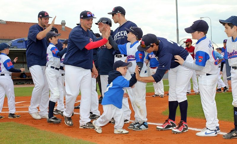 Nejlepší české baseballisty doprovázeli při nástupu na stadion mladí hráči Nuclears