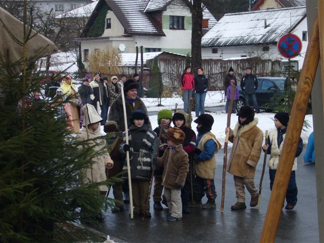 Poté seznámil P. Marian Sokol, humpolecký vikář, přítomné s evangelijní zprávou o příchodu třech mudrců do Betléma, jak ji zaznamenal evangelista Matouš. Přítomným koledníkům samozřejmě udělil požehnání pro jejich koledování a také, aby jej roznášeli do domácností, které navštíví. Toto požehnání bylo domům a bytům symbolicky předáno prostřednictvím nápisu, který psaly skupinky na dveře (K+M+B 2012). Ještě než se tak stalo, vyčkali všichni přítomní příjezdu Tří králů na koních. Za halasného bubnování přijeli až ke svaté rodině. Poklonili se, předali zlato, kadidlo a myrhu. Se všemi přítomnými zazpívali píseň Narodil se Kristus Pán.