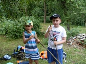Odpoledne patřilo opět tvoření. Kašírovanému výrobku přibyla ouška a hned bylo poznat, že to budou kočičky, které musely ještě dolepit papírovými ubrousky. Než zaschly, každý si nazdobil svoji lžičku Fimo hmotou. „Škoda, že nám jen jednu,“ ozývalo se od stolečků. Děvčata končila den proplétáním svých těl při hře Twistr a chlapci při fotbalu na zahradě.