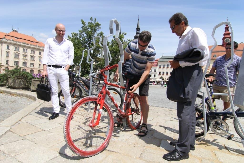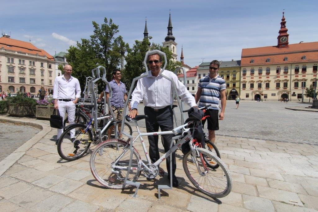 „Mimo to, že Jihlava dohání dluh, který má vůči stále přibývajícím cyklistům, dostává do centra města zajímavé objekty, které ozvláštňují veřejný prostor,“ vysvětlil primátor Jihlavy Jaroslav Vymazal, který ke stojanům postavil první „ježčí“ kolo v barvách města.