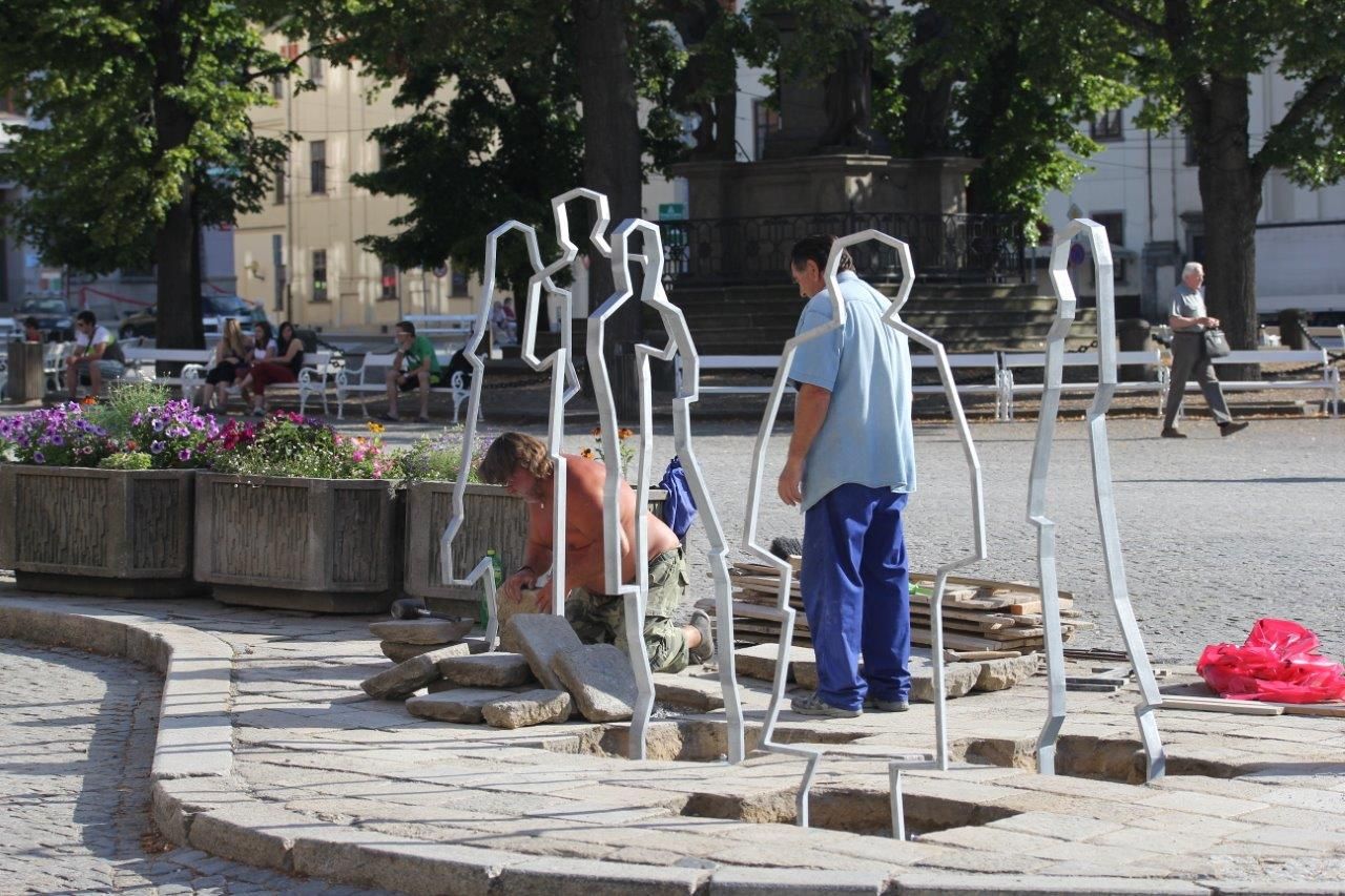 Každý stojan je jiný, siluety se mění podle umístění. Na náměstí jsou to běžní chodci, u pošty a banky jsou to například postavy s telefonem u ucha či úředníci s dokumenty, na plánovém budoucím stanovišti u turistického rozcestníku to budou třeba turisté s batohy. „Už se objevily první požadavky, abych na další stanoviště udělal siluety konkrétních lidí,“ dodal s úsměvem architekt David Beke.