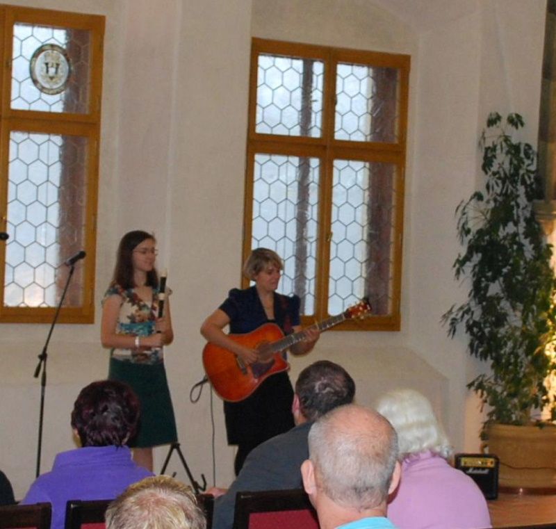 Markéta a Klára z Batelova. Říkají si písničkářky do nepohody, což pro dané odpoledne bylo zcela příznačné, neboť za okny radnice řádil ostrý a studený vítr a předčasně přivál zimu se vším všudy.