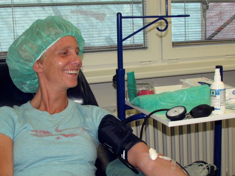 „Chtěla jsem podpořit dobrou věc a jsem ráda, že k tomu vyšla tato příležitost,“ dodává s tím, že darovat poprvé krev šli na dalších místech Česka také moderátoři a reportéři Českého rozhlasu. Do jihlavské nemocnice přišli darovat krev herci Horáckého divadla i sportovci. Během 4-8 minut bylo každému odebráno 450 ml krve.Co se děje s krví po odběru?