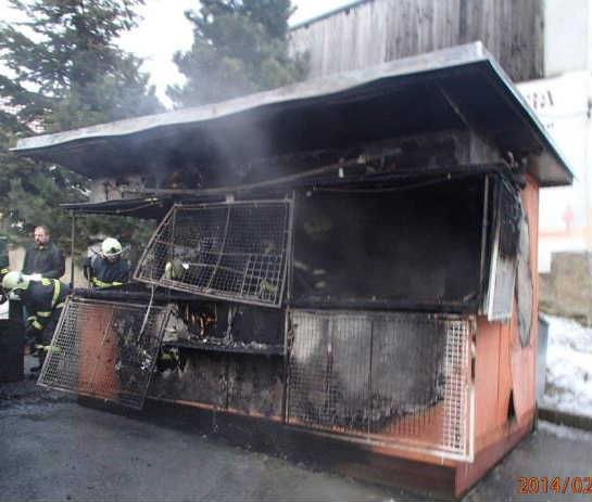 Tři jednotky hasičů likvidovaly v úterý 4. února ráno hořící novinový stánek v Husově ulici v Moravských Budějovicích.