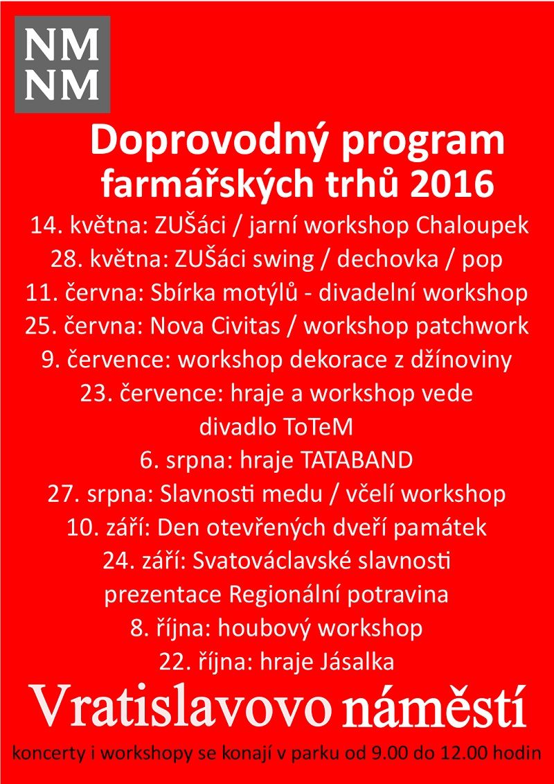 Připraven je jako každý rok bohatý doprovodný program, trhy se konají až do října jednou za měsíc.