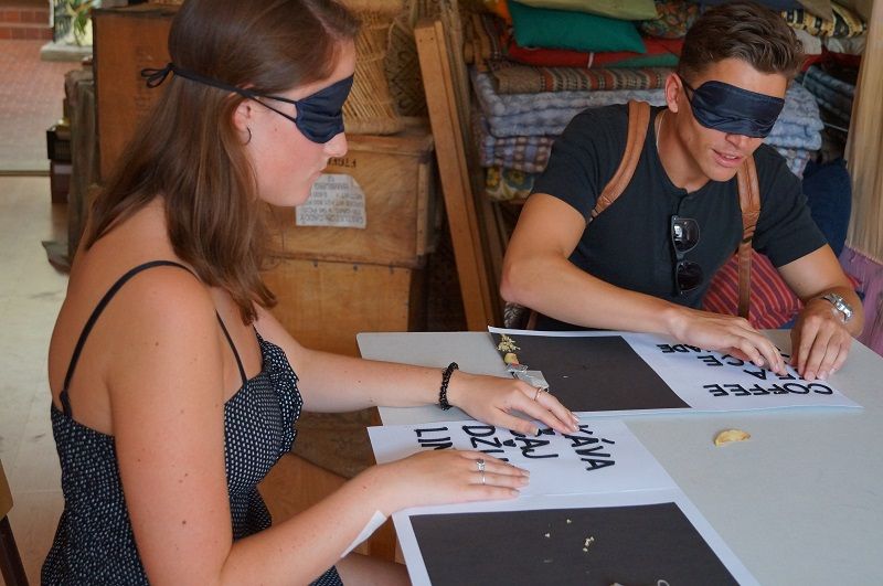 „Více než osmdesát hostů si mohlo odpoledne vyzkoušet výběr nápojů a dezertů ze speciálních nápojových lístků, dále poznávání předmětů, které používáme v průběhu dne, zahrát si společenské hry a to vše s klapkami na očích, uvedla Lea Kazatelová, spoluautorka projektu. Dále v rámci programu kavárny pro ně bylo připraveno poznávání zvuků, prezentace zaměřená na výcvik a využití vodících psů v životě nevidomé osoby a představení zhruba dvacet zvláštních pomůcek pro osoby s vadou zraku, které zajišťovaly zaměstnankyně TyfloCentra Jihlava, o. p. s., v čele s ředitelkou Ivetou Bělovovou-Dolejší,“ uvedla Veronika Šustrová.