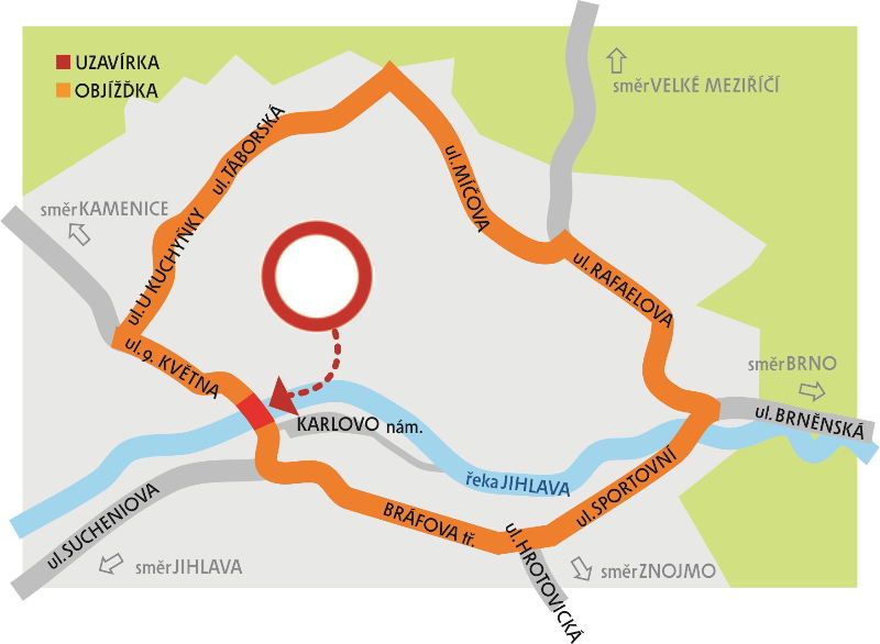 Výstavba se dotkne nejenom obyvatel Třebíče, ale všech, kteří naším městem projíždí, nebo přijedou za památkami. Od jara do zimy bude probíhat výstavba na stávajícím místě, takže komunikace přes řeku bude uzavřená. „Náhradní přemostění není bohužel vzhledem k umístění mostu v historické památkové zóně a vzhledem k protipovodňovým opatřením možné. Čekají nás tedy objížďky. Objízdné trasy jsou už známé. V současné době probíhají práce na úpravě jízdních řádů městské autobusové dopravy,“ dodal místostarosta.