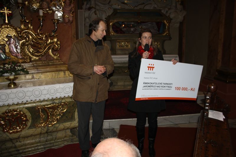 14 600 Kč byl věnován na opravu varhan. Na koncertu předala zástupkyně společnosti ČEZ Jana Štefánková z Jaderné elektrárny Dukovany faráři Janu Kováři šek se sumou