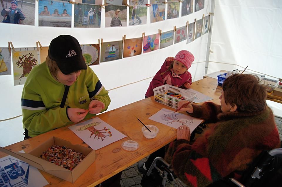 Jedna z dvaceti služeb jihlavské Charity Adapta, která se věnuje lidem s postižením, byla přítomna v jednom ze stanů, kde se pracovníci se svými uživateli věnovali kreativní tvorbě.