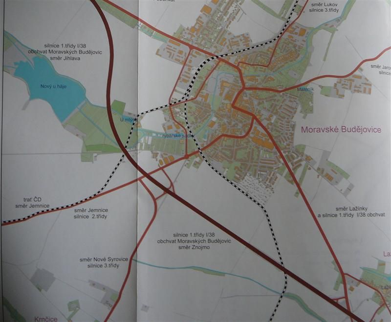 Mapka obchvatu kolem Moravských Budějovic