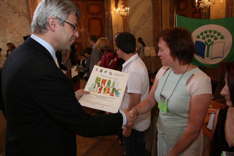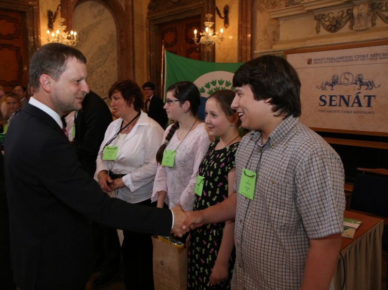 V prostorách Senátu Parlamentu ČR ho ve čtvrtek 19. června převzali členové ekotýmů obou škol z rukou ministra školství Marcela Chládka a Petra Daniše, ředitele Sdružení Tereza, které program Ekoškola v ČR koordinuje.
