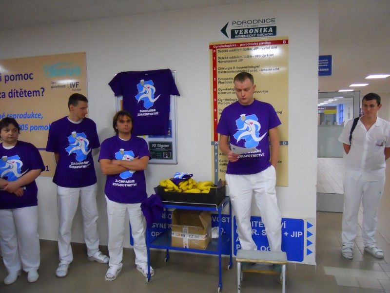 Zachraňme zdravotnictví, a přítomná hromádka banánů měla symbolizovat, že žijeme v