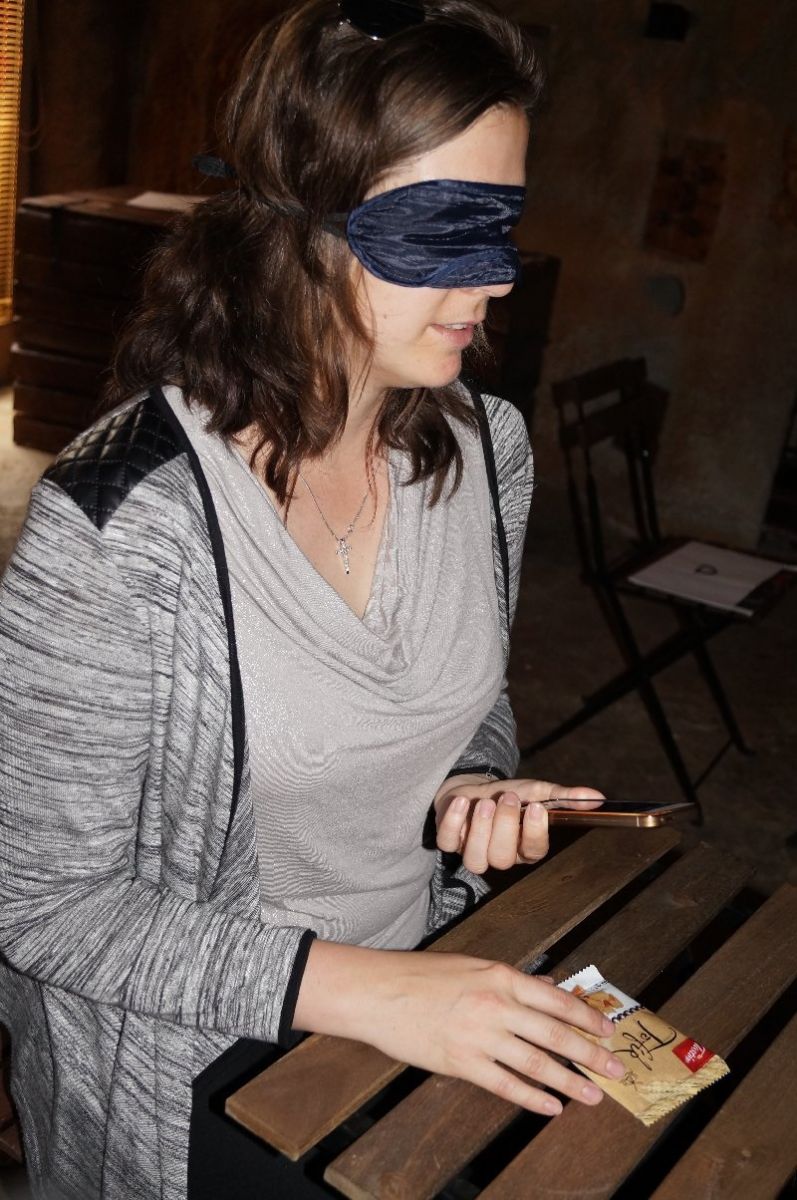 Ve speciálně upravených prostorách Environmentálního centra v Zoo Jihlava PodpoVRCH si poté zájemci o akci objednávali nápoje a drobné občerstvení ze speciálních připravených nápojových lístků pomoci hmatu a čichu. Vybrané nápoje si potom mohli nalít pomocí tzv. hladinky. „Když jsem je v závěru návštěvy kavárny viděla, byla jsem překvapena z velikosti písmen, s klapkami na očích jsem měla pocit, že jsou daleko menší,“ uvedla jedna z návštěvnic.